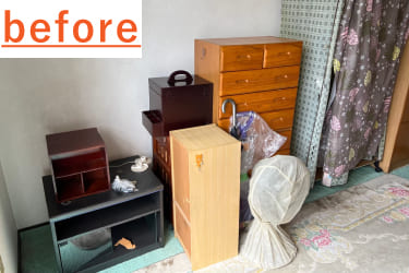 生活環境そのままの状態からスタッフに片付け作業を丸投げ出来るので、お客様は見ているだけで大丈夫のお任せプランです。必要な物の探索や、要る物、要らない物を一緒に分別など、どんな状況からでもお客様都合に合わせて対応します。