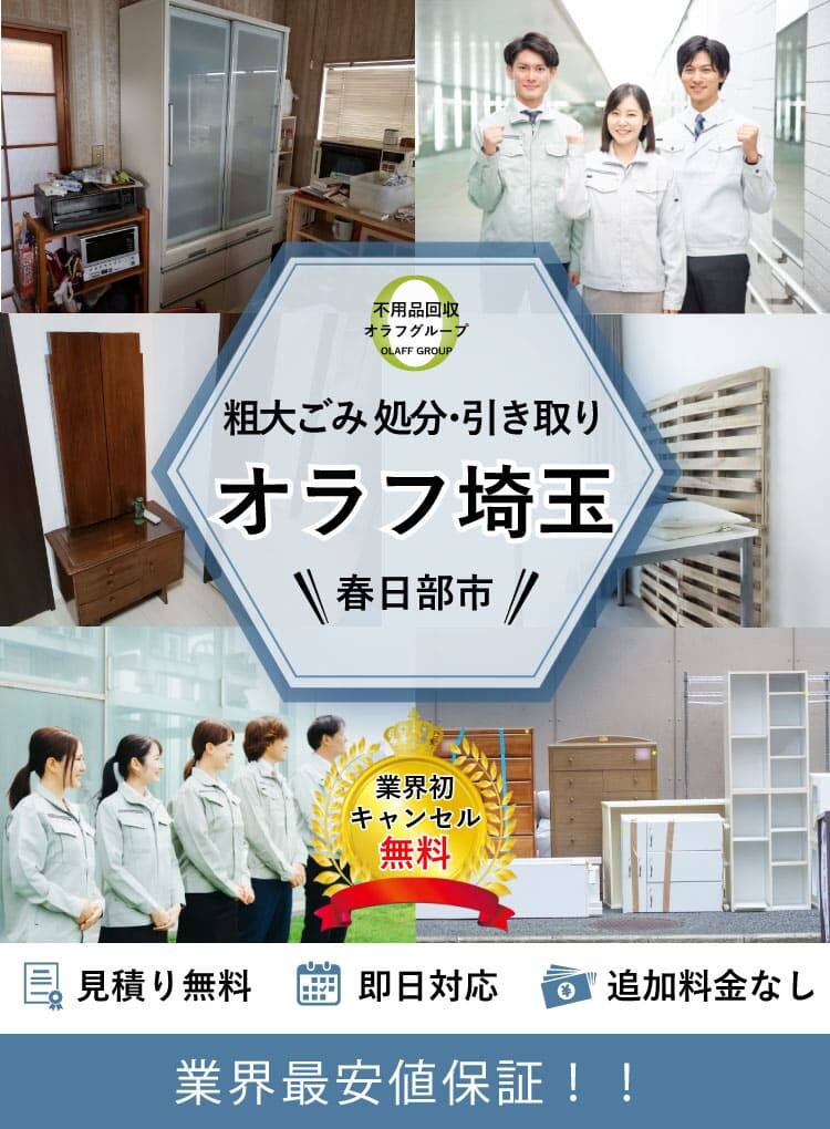 春日部市全域で粗大ごみの引取り、回収、処分の対応が可能です。