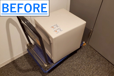 以前ご利用いただいたお客様より、「使わなくなった金庫を1点だけ回収してほしい」とのご依頼をいただき、再度お伺いしました。室内の窓際に設置された小型の金庫で、コンパクトながら重量があり、ご自身での移動が難しい状況でした。お客様からは「前回同様、安心して任せられました」と嬉しいお言葉をいただきました。