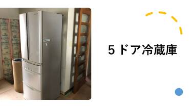 家庭用冷蔵庫の中では大型に値する5ドアタイプの冷蔵庫、全機種の回収、処分・買取りリサイクルの対応が可能です。壊れていても動かなくても回収可能です。年式が5〜6年以内であれば買取りの可能性が有ります。まずは無料相談からどうぞ。