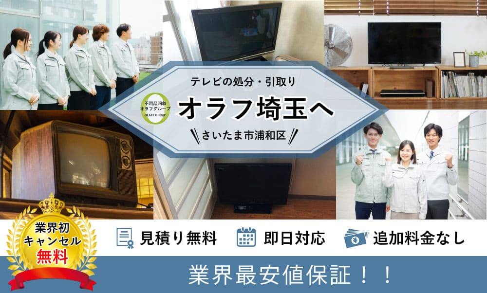 さいたま市浦和区でテレビの処分なら当社へお任せください!ブラウン管テレビ、液晶テレビ、プラズマテレビ、最新の有機ELテレビまで何でも対応します。テレビは処分だけのご案内ではなく、リサイクルや買取りも積極的におこなっていて、自社でリサイクルショップを運営している強みを最大限に活かしたテレビの回収サービスを展開している地域密着12年の老舗です。