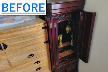 お仏壇は大型家具です。収集日当日は自分で外まで出さなければいけないので、事前に外に出せるように準備をしましょう。必要であれば解体もしておきましょう。