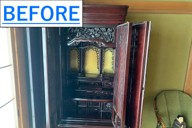 お焚き上げ供養を終えた仏壇の回収を担当しました。長年ご家族で大切にされていたもので、慎重な気持ちで作業に臨みました。ご依頼主様は「気持ちの整理がつかず、なかなか処分を決められなかった」とお話しされており、私たちもその思いを受け止めながら、仏壇に合掌し布で包み搬出しました。