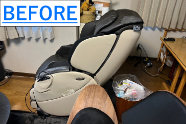 故障して動かなくなったマッサージチェアの回収依頼をいただきました。長年使用されていたとのことで、内部のモーターが動かず、リクライニングも固定されたままの状態でした。重量もかなりあり、お客様ご自身では処分できずお困りだったそうです。搬出後、「やっと片付きました」と安堵の表情を見せていただけました。