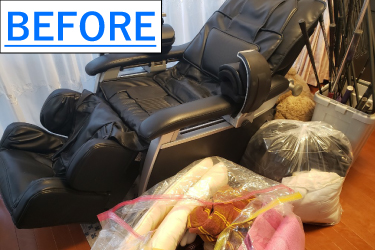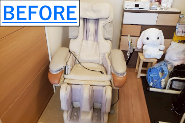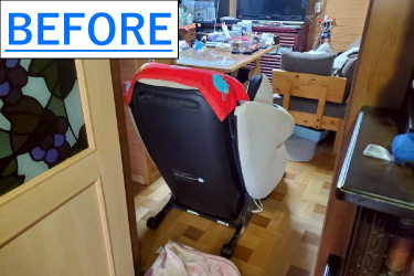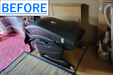 和室に置かれていた大型のマッサージチェアを回収させていただきました。長年ご家族で使用されていたとのことで、「動かなくなってしまったけれど、思い出もあってなかなか捨てられなかった」とお話しされていたのが印象的でした。