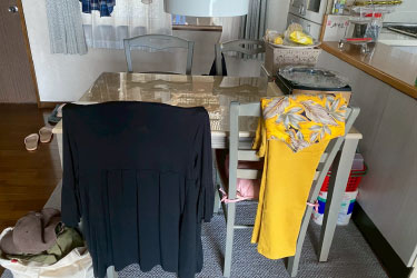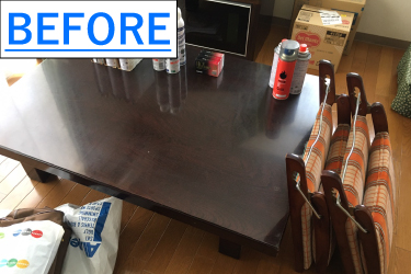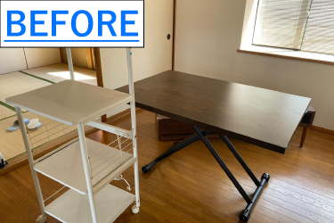 リビングに置かれていた木製の机とテレビ台の回収を行いました。お客様からは「新しい家具を買い替えるので処分したい」とのご依頼。テレビ台はガラス扉付きだったため、割れないよう養生して丁寧に取り扱いました。