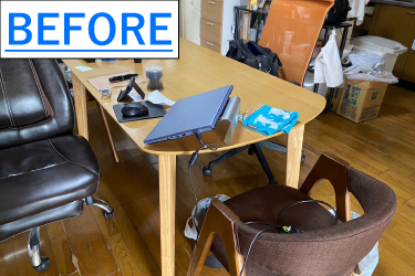 リモートワークで使用されていた大きめのデスクと椅子の回収を行いました。しっかりとした木製の天板で、パソコンや書類を広げるのに便利なサイズでしたが、お客様から「在宅勤務が終わったので処分したい」とのご依頼でした。
