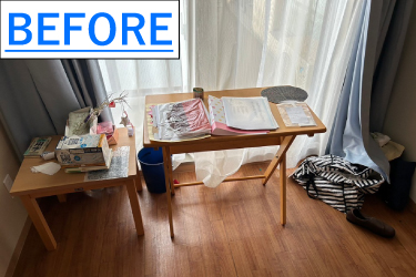窓際に置かれていた木製の机2台の回収を行いました。お客様からは「思い切って断捨離をしたい」とのご相談で、不要になった家具を一気に片付けたいとのことでした。軽量タイプの机でしたが、作業スペースが限られていたため、周囲のカーテンや壁を傷つけないよう慎重に搬出しました。2台とも状態が良く、きれいに使われていたのが印象的です。