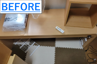 今回は、お引っ越し後にお部屋へ残ってしまった学習机の回収を行いました。白を基調としたシンプルなデザインの机で、引き出し付きのワゴンもセットになっていました。お客様からは「新居には持っていけず、そのまま置いていくしかなかった」とのご相談。引っ越しの際に残ってしまう家具は意外と多いため、今後もスピーディーに対応していきたいと思います。
