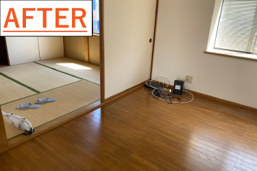 和室に置かれていた学習机とワゴン、そしてキャスター付きの椅子2脚を回収しました。机はしっかりした作りで重量があり、畳を傷つけないよう毛布を敷いて搬出を実施。椅子のキャスター部分も床を滑らせず、慎重に持ち上げて運び出しました。
