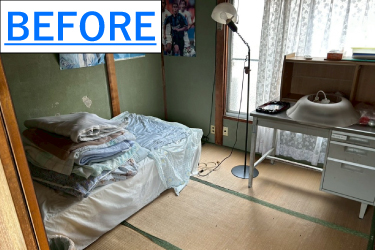 長年使ってこられたベッドとデスクのある和室での回収でした。ご依頼主様は「引っ越しを機に残っている物全て回収してほしい」とのことで、寝具や細かな家電も一緒にお任せいただきました。狭い廊下でもスムーズに搬出できるよう、幅などを確認してから作業を進めました。