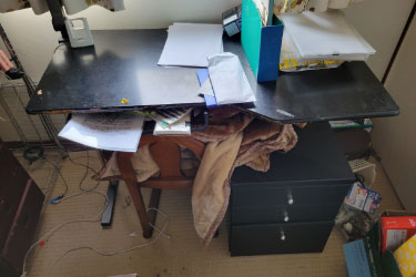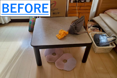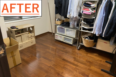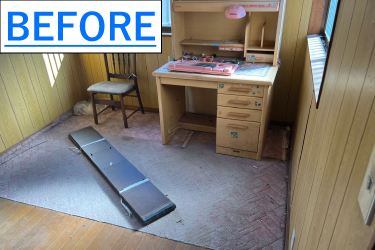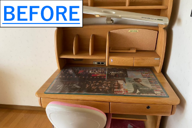 長年使われていた学習机とマットの回収をご依頼いただきました。引き出しの中には思い出の品が残っていたため、お客様に確認を取りながら丁寧に仕分けを行いました。マットは長年敷かれていたため埃が多く、撤去後は掃き掃除まで対応しました。