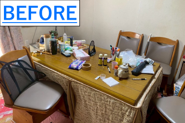 長年使用されてきたダイニングセットの回収を承りました。ご家族が減り、もう少しコンパクトな机に買い替えるとのことで、今回のご依頼となりました。搬出後の空間は広くなり、「新しいテーブルを置くのが楽しみです」と笑顔で話してくださったのが印象的でした。