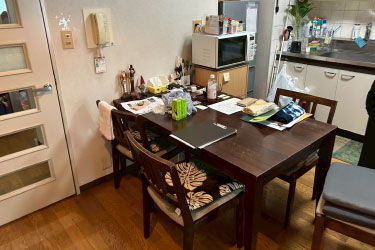 ダイニングテーブルや椅子など、リビングに置いてある物の回収をご依頼いただきました。家を売却する予定で自分達である程度片づけたけれど、残っている物を回収してほしいとの事でした。事前に無料で見積もりを行っていたので、当日物量を確認して相違が無いことを確認して回収を行いました。