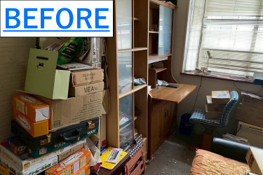 子供部屋で使用していた部屋は物置状態になっていて、机や棚など複数の家具や細かい不用品を回収しました。お子様が自立して家を出た事により、物置として使用していたがそろそろ片づけようと当社へご依頼を下さいました。回収後には簡易清掃を行い、全ての作業を終了させていただきました。