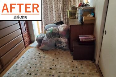 ご家族が施設に入居されることになり、お部屋の片付けの一環としてマッサージチェアと残っている不用品の回収をご依頼いただきました。必要な物は既に引っ越しを終えていて、残っている物は全て回収してくださいとの要望でしたので、搬出を終えた後は簡易清掃を行い綺麗な状態で回収作業を終えました。