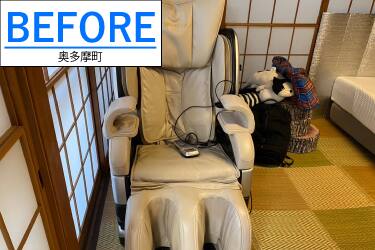 奥多摩町でマッサージチェアの処分ならオラフグループにお任せ下さい!地域最安値の料金で使わなくなったマッサージチェアを処分します。マッサージチェアの搬出作業は無料で対応します。重くて部屋から出せないマッサージチェアでも当社専門のプロスタッフに遠慮なくお任せ下さい!お見積もりは24時間365日無料で受付中。