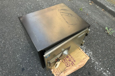 こちらの現場では、扉が壊れた状態の金庫を回収しました。毛布を敷いて金庫をスライドさせる方法を用い、スタッフ二人でバランスを取りながらゆっくりと玄関先まで運び出しました。お客様からは「重くて処分できず困っていたので助かった」とお言葉をいただき、安心されたご様子でした。