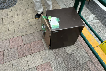 金庫を収集日当日に自分で外まで出してください。一軒家戸建てなら門の外等、集合住宅なら1階のエントランス外、邪魔にならない場所に置きましょう。