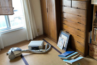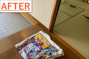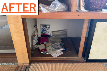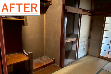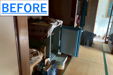 今回のご依頼は、古い木製棚の横に設置されていた金庫と押し入れに入った衣類などの回収でした。設置場所が奥まった位置にあり、持ち出すには家具を避けながらの搬出作業となりました。重量があるため2名での対応でしたが、事前に床へ養生を行い、畳や柱に傷をつけないよう細心の注意を払い、搬出を行いました。