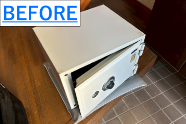 こちらの現場では、窓際の棚に設置されていた耐火金庫の回収を行いました。回収日時はお客様のご都合に合わせて調整し、短時間でスムーズに作業を完了。お客様からは「重くて自分では動かせなかったので助かりました」と感謝のお言葉をいただました。